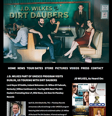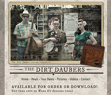 This site was created for The Dirt Daubers during their “old-timey” phase. The look was inspired by the postcards traveling bands from the dust-bowl era would leave behind. Though we also do their current site, this one holds a special place in our hearts.
